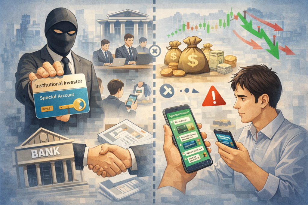 投資詐欺の文脈でよく使われる言葉の一つに、「機関投資家の口座を使って取引する」という表現があります。 一見すると、専門的で安全性の高い仕組みのように聞こえるため、疑問を持たずに受け入れてしまう人も少なくありません。