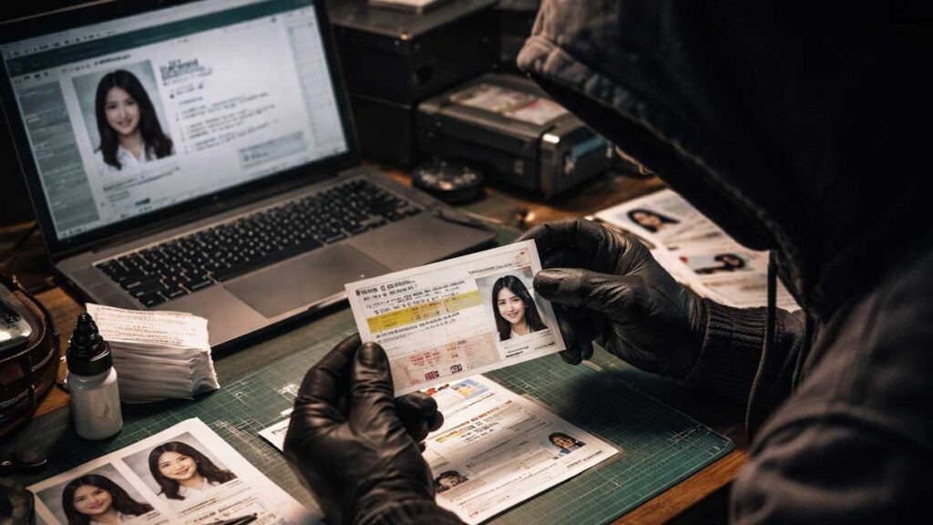 さらに悪意ある第三者は、公開されている顔写真をもとに、偽造された運転免許証やパスポート風の身分証の実物媒体を作成し、本人確認や照合が十分でないサービスに悪用することも可能になります。